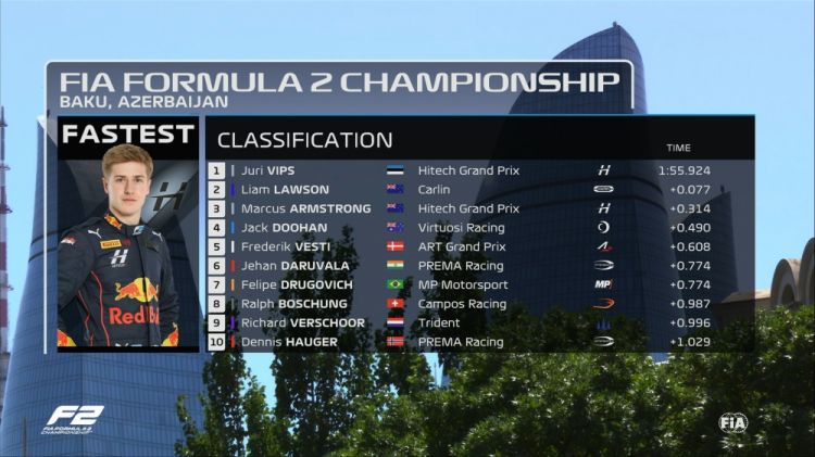 İyunun 10-da Formula 1 Azərbaycan Qran-Prisi çərçivəsində Bakı şəhər halqasında keçirilən Formula 2 üzrə sərbəst yürüş başa çatıb.