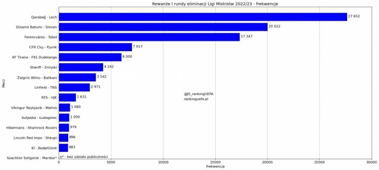 İkinci pillədə 20 min 22 tamaşaçı ilə “Dinamo” (Batumi, Gürcüstan) – “Slovan” (Bratislava, Slovakiya) matçı yer alıb. İlk üçlüyü “Ferentsvaroş” (Macarıstan) – “Tobol” (Qazaxıstan) görüşü tamamlayıb - 17 347.