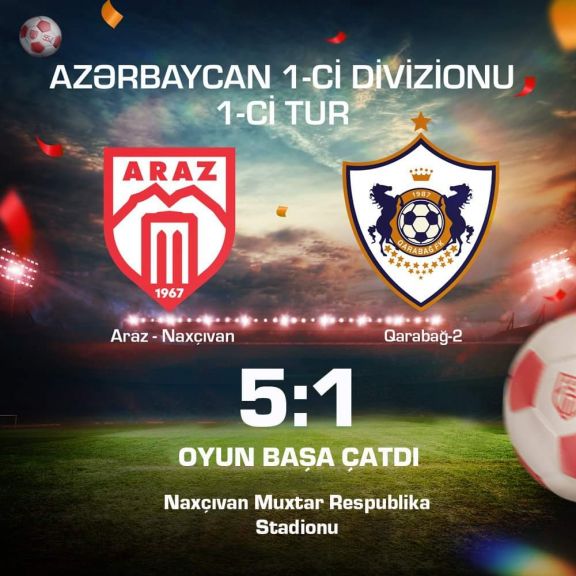 NUHÇIXAN İnformasiya Agentliyi xəbər verir ki, Naxçıvan Muxtar Respublika Stadionunda baş tutan qarşılaşmada Naxçıvan təmsilçisi "Qarabağ-2" komandası üzərində 5-1 hesablı qələbə qazanıb.