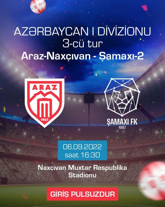 Futbol üzrə Azərbaycan I Divizionunun 3-cü turu çərçivəsində “Araz-Naxçıvan” ilə “Şamaxı-2” komandaları qarşılaşacaq.