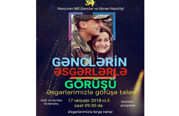 NUHÇIXAN xəbər verir ki, oktyabrın 17-də saat 09:30-da Daxili Qoşunların "Naxçıvan" Əlahiddə Əməliyyat Briqadasında əsgərlərlə görüş təşkil olunacaq. Əsgərlərimizlə görüşüb, onların silah, sursat və texnikaları ilə, məişət şəraitləri ilə yaxından tanış olmaq istəyənlər qeydiyyatdan keçə bilərlər. Tədbirin sonunda konsert proqramı və əsgərlərimizlə birgə nahar süfrəsi təşkil olunacaq.