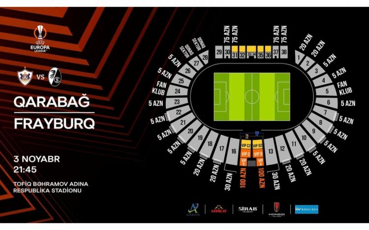 Bakıda "Qarabağ" və Almaniyanın "Frayburq" komandaları arasında keçiriləcək UEFA Avropa Liqasının qrup mərhələsinin VI tur oyunu üçün biletlər satışa çıxarılıb.