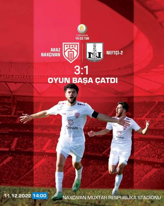 Azərbaycan I Divizionunun XIV turu çərçivəsində "Araz- Naxçıvan" "Neftçi-2"ni qəbul edib.