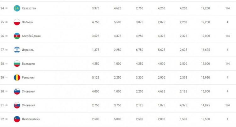 Aktivinə 0,500 xal əlavə edən Azərbaycan 26-cı pilləyə yüksəlib. İsrail 18,625 xalla 25-ci pillədə qərarlaşıb, Polşa və Qazaxıstan 19,250 xalla 25-ci və 24-ci yerləri bölüşürlər. Polşanın avrokuboklarda təmsilçisi qalmayıb. Beləliklə, “Qarabağ” UEFA Avropa Liqasının qrup mərhələsində xallar qazana bilsə, Polşanı geridə qoymaq mümkün olacaq.