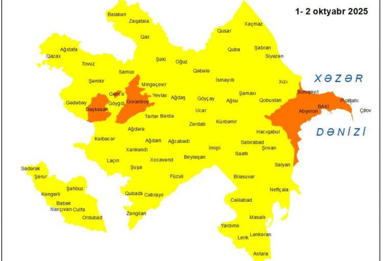 Oktyabrın 2-dək Bakıda və Abşeron yarımadasında, eyni zamanda, əksər bölgələrdə gözlənilən küləkli hava şəraiti ilə bağlı sarı və narıncı xəbərdarlıqlar verilib.