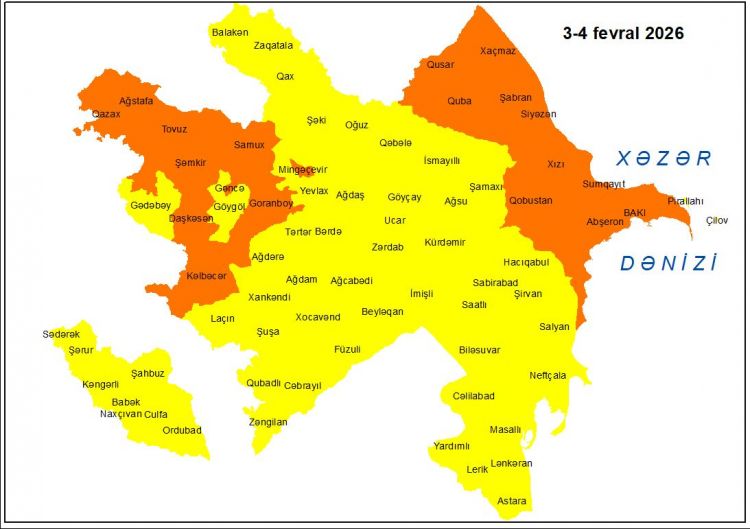 Fevralın 3-4-də Bakıda və Abşeron yarımadasında, eyni zamanda, əksər bölgələrdə gözlənilən küləkli hava şəraiti ilə bağlı sarı və narıncı xəbərdarlıq verilib.