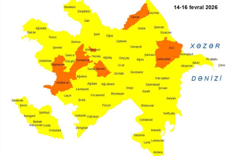 Milli Hidrometeorologiya Xidməti fevralın 14-16-da Bakıda və Abşeron yarımadasında, eyni zamanda, bölgələrdə gözlənilən küləkli hava şəraiti ilə bağlı sarı və narıncı xəbərdarlıq verib.