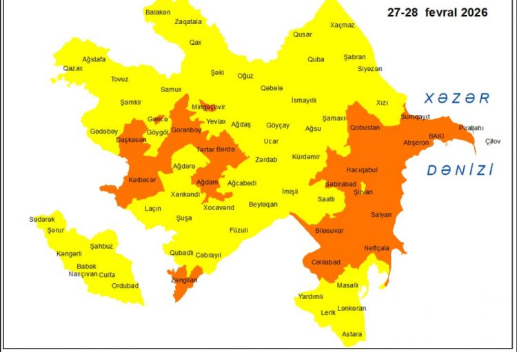 Milli Hidrometeorologiya Xidməti fevralın 27-28-də Bakıda və Abşeron yarımadasında, eyni zamanda, bölgələrdə gözlənilən küləkli hava şəraiti ilə bağlı sarı və narıncı xəbərdarlıq verib.