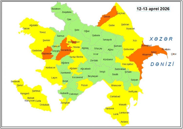 Aprelin 12-13-də Bakıda və Abşeron yarımadasında, eyni zamanda bəzi bölgələrdə gözlənilən küləkli hava şəraiti ilə bağlı sarı və narıncı xəbərdarlıq verilib.