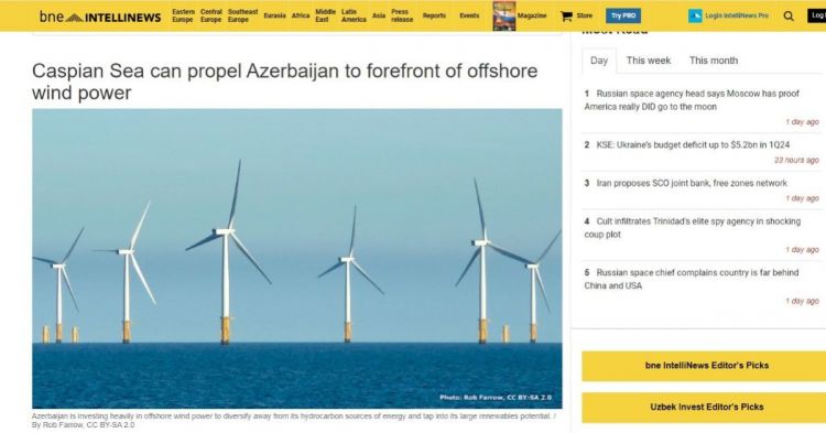 Avropa biznes dairələrinin “BNE Intellinews” (Business New Europe) nəşrində Azərbaycanda dəniz külək enerjisinin inkişaf perspektivlərindən bəhs edən məqalə dərc olunub.