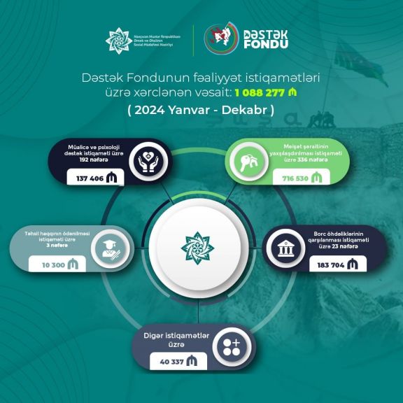 Məişət şəraitinin yaxşılaşdırılması istiqaməti üzrə - 336 nəfərə 716 min 530 manat;