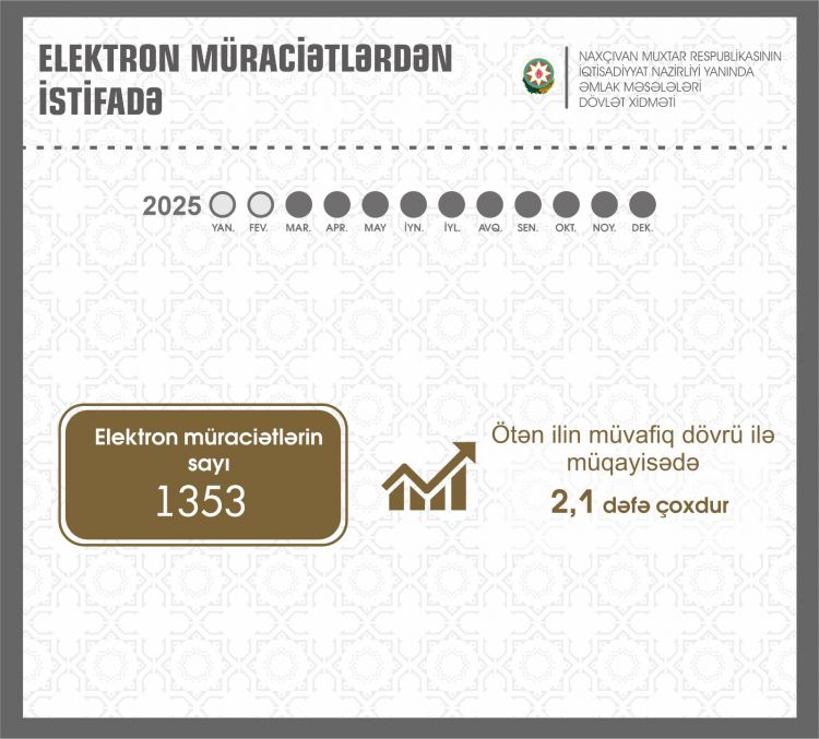 NUHÇIXAN-ın məlumatına görə, 2025-ci ilin 2 ayında vətəndaşlardan sahibkarlıq fəaliyyətini həyata keçirən hüquqi və fiziki şəxslərdən Xidmətə 1353 elektron müraciət daxil olub ki, bu da ötən ilin müvafiq dövrü ilə müqayisədə 2,1 dəfə çoxdur