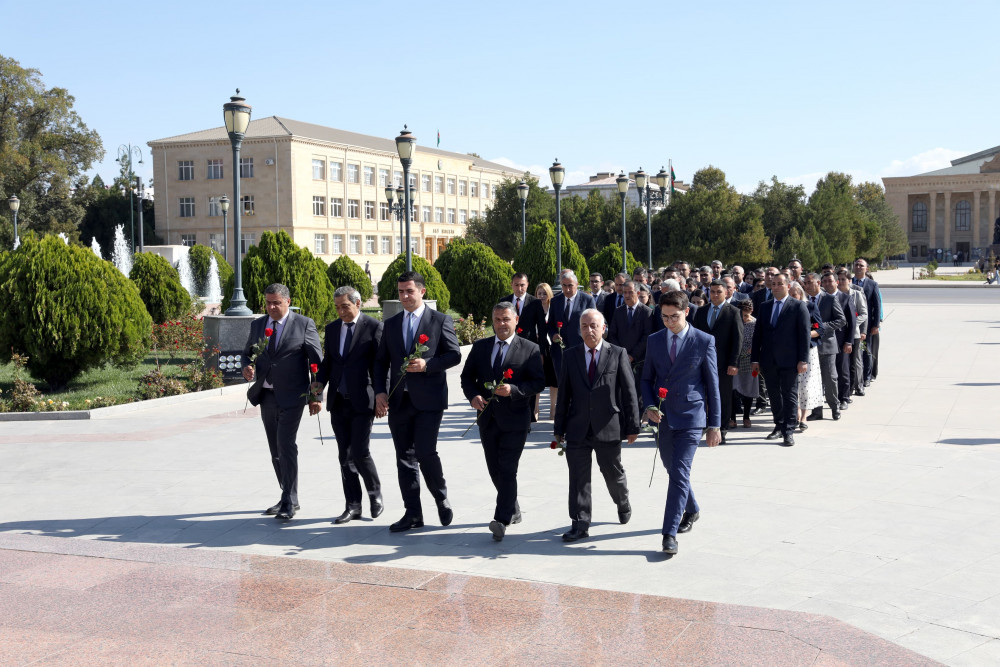 Əvvəlcə Nazirlik əməkdaşları Ümummilli Lider Heydər Əliyevin abidəsini ziyarət edərək dahi şəxsiyyətin xatirəsini ehtiramla yad ediblər.