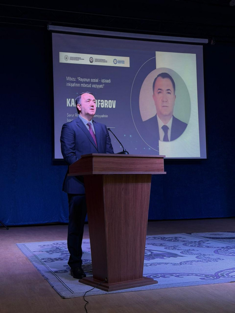 Daha sonra Şərur Rayon İcra Hakimiyyətinin başçısı Kamal Cəfərov açılış nitqi ilə çıxış edərək rayonun sosial-iqtisadi inkişafının mövcud vəziyyətindən danışıb. İcra başçısı bildirib ki, “Naxçıvan Muxtar Respublikasının sosial-iqtisadi inkişafına dair 2023–2027-ci illər üçün Dövlət Proqramı”ı çərçivəsində Şərur rayonunda genişmiqyaslı abadlıq-quruculuq işləri həyata keçirilib, xüsusilə kənd təsərrüfatı sahəsində mühüm nailiyyətlər əldə olunub.