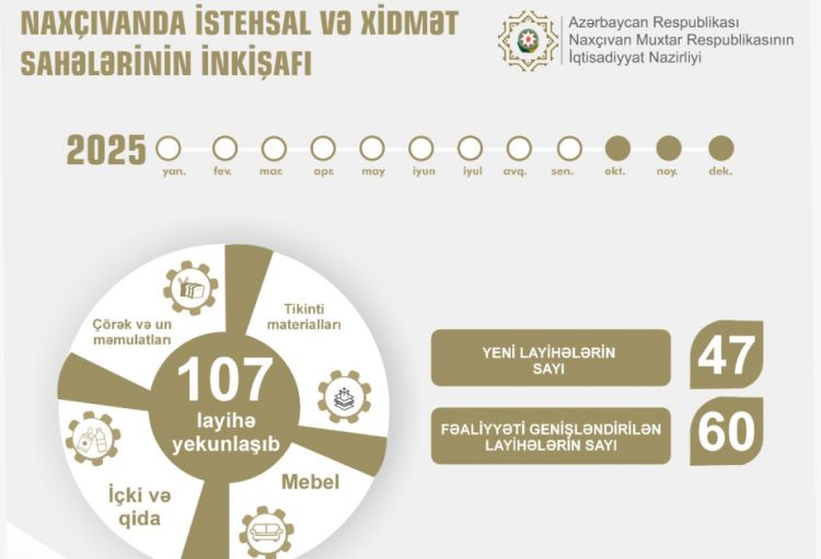 Bu ilin yanvar-sentyabr aylarında Naxçıvan Muxtar Respublikasında müxtəlif təyinatlı 107 istehsal və xidmət sahəsi fəaliyyətə başlayıb.