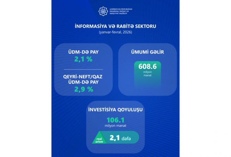 Rəqəmsal İnkişaf və Nəqliyyat Nazirliyindən NUHÇIXAN-a bildirilib ki, fevralın sonunadək olan göstəricilərə əsasən, informasiya və rabitə sektorunun ÜDM-də payı artaraq 2,1%-ə yüksəlib. Qeyri-neft/qaz sektorunun ÜDM-də payı isə 2,9% təşkil edib.