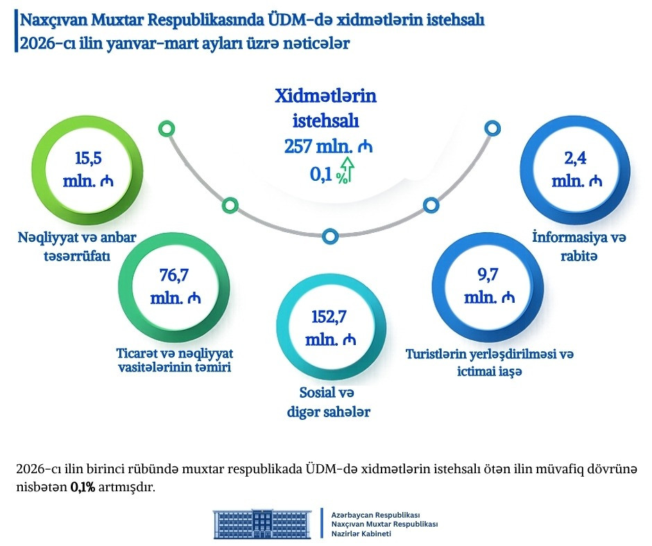 Ümumilikdə, 2026-cı ilin yanvar-mart aylarının nəticələri Naxçıvan Muxtar Respublikasında iqtisadi aktivliyin qorunduğunu, əsas makroiqtisadi göstəricilər üzrə artım meylinin davam etdiyini və sahibkarlığın, istehsalın, xidmətlərin, sosial göstəricilərin inkişafı istiqamətində görülən işlərin real nəticələr verdiyini göstərir.