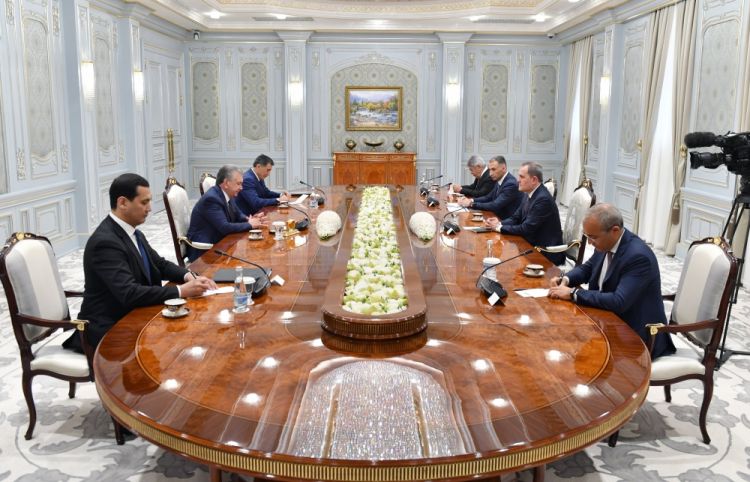 Özbəkistan Prezidenti Şavkat Mirziyoyev Azərbaycan Respublikasının xarici işlər naziri Ceyhun Bayramov, iqtisadiyyat naziri Mikayıl Cabbarov, rəqəmsal inkişaf və nəqliyyat naziri Rəşad Nəbiyev ilə görüşüb.