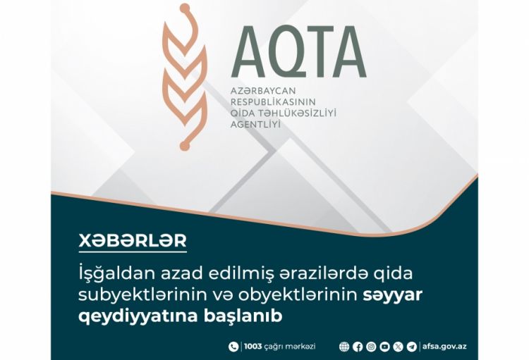 Azərbaycan Respublikasının Qida Təhlükəsizliyi Agentliyi (AQTA) işğaldan azad olunmuş ərazilərdə qida təhlükəsizliyi, baytarlıq və fitosanitar, o cümlədən həmin ərazilərə köçürülən əhalinin təhlükəsiz qida ilə təminatına şərait yaradılması istiqamətində nəzarət tədbirlərini davam etdirir.