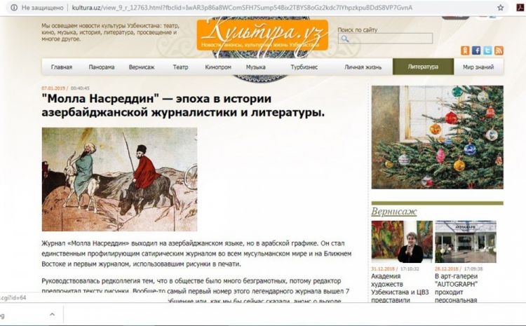 Daşkənddəki kultura.uz portalında “Molla Nəsrəddin” satirik jurnalı haqqında rus dilində material yerləşdirilib.