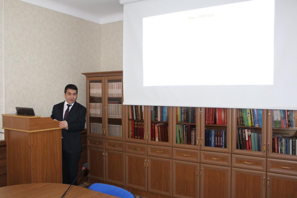 Tədbir çərçivəsində Həsən Seyidov “Mədrəsə” tarix-memarlıq abidəsinin mövcud vəziyyətini əks etdirən slayd təqdimatı ilə çıxış edib. Abidənin müxtəlif rakurslardan çəkilmiş görüntüləri nümayiş olunub, onun memarlıq xüsusiyyətləri, tarixi qatları və bərpa ehtiyacları ətraflı şəkildə izah edilib.
