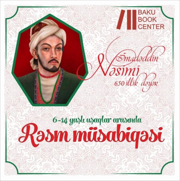 Bakı Kitab Mərkəzi 6-14 yaşlı uşaqlar və yeniyetmələr arasında dahi Azərbaycan şairi və mütəfəkkiri İmadəddin Nəsiminin 650 illiyinə həsr olunmuş rəsm müsabiqəsi elan edib.