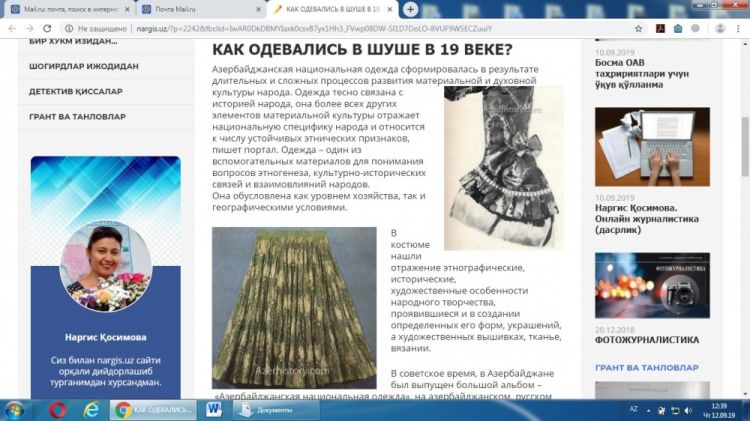 Özbəkistanın nargis.uz portalında rus dilində “19-cu əsrdə Şuşada necə geyiniblər” sərlövhəli məqalə dərc olunub.