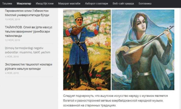 Özbəkistanın uchildiz.uz portalında Azərbaycan sazı haqqında rus dilində geniş məqalə yer alıb.
