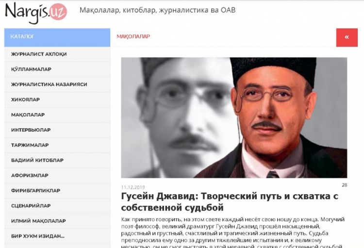 Özbəkistanın nargis.uz portalında böyük Azərbaycan dramaturqu və şairi Hüseyn Cavid haqqında rus dilində məqalə yerləşdirilib.