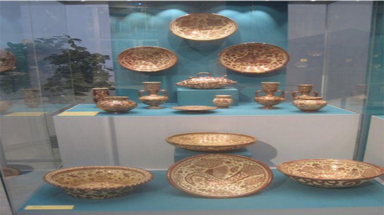 NUHÇIXAN kuskovo.ru saytına istinadla xəbər verir ki, ekspozisiyada ərəb ölkələri, İran, Orta Asiya, Osmanlı imperiyası dövründə türk, həmçinin İspaniyanın cənubu və Portuqaliya keramika məmulatları yer alıb. Sərgidə kasalar, nimçələr, qablar, vazalar, qəlyan üçün sər, mücrülər, kaşılar (lövhə və panno) təqdim edilir. Burada unikal incəsənət əsəri olan və adını qulpunun formasından almış “qanadlı vaza” da sərgilənir. Vaza XV əsrin son rübünə aid Valensiya ustalarının əl işidir. XVIII əsrə aid delfin fiqurunda ispan qabı da maraqlı eksponatlardandır.