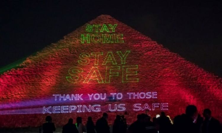 NUHÇIXAN xəbər verir ki, Misirin Qədim Abidələr və Turizm Nazirliyi yerli sakinlərə və turistlərə səyahətlərini təxirə salmaq və evlərində qalmaqla bağlı çağırış edib. Nazir Xalid Anani qeyd edib ki, ehramların mesajı gələcək günlər naminə insanları öz sağlamlığını qorumağa səsləyir. Böyük Giza ehramının üzərində ingilis və ərəb dillərində yazılmış "Evdə qal", "Özünü qoru" və "Bizim təhlükəsizliyimizi qoruyanlara eşq olsun" sözləri bir-birini əvəz edir.