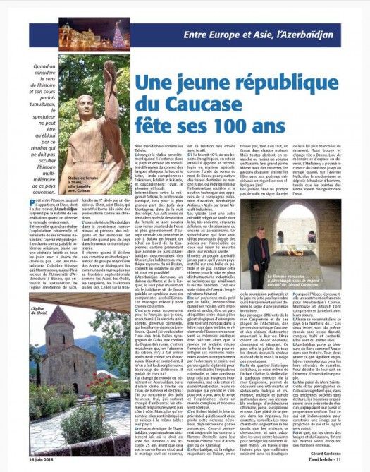NUHÇIXAN xəbər verir ki, Fransanın Elzas regionunun “DNA” qəzetində “Qafqazın gənc respublikası 100 illiyini qeyd edir” adlı məqalə dərc olunub.