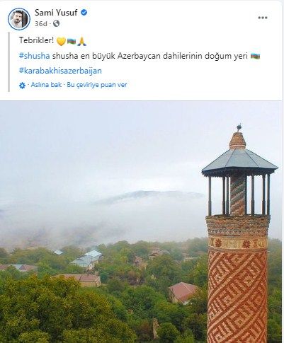 “Təbriklər! Şuşa-bəzi böyük Azərbaycan dahilərinin doğulduğu yer”.