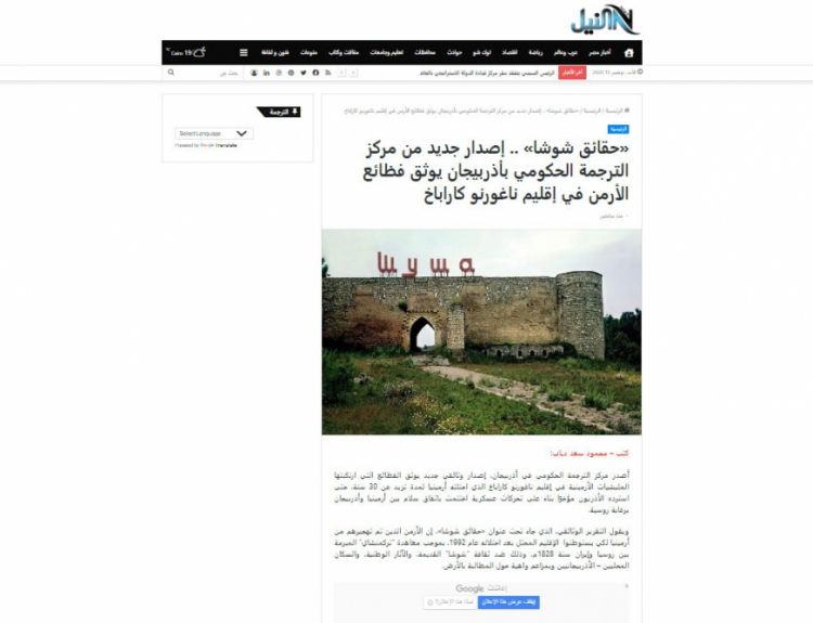 Misirin “Nile1” informasiya portalının baş redaktoru Mahmud Diab Azərbaycanın qədim şəhəri olan Şuşa barədə Dövlət Tərcümə Mərkəzinin hazırladığı “Şuşa həqiqətləri” videoçarxı haqqında məqalə yazıb.