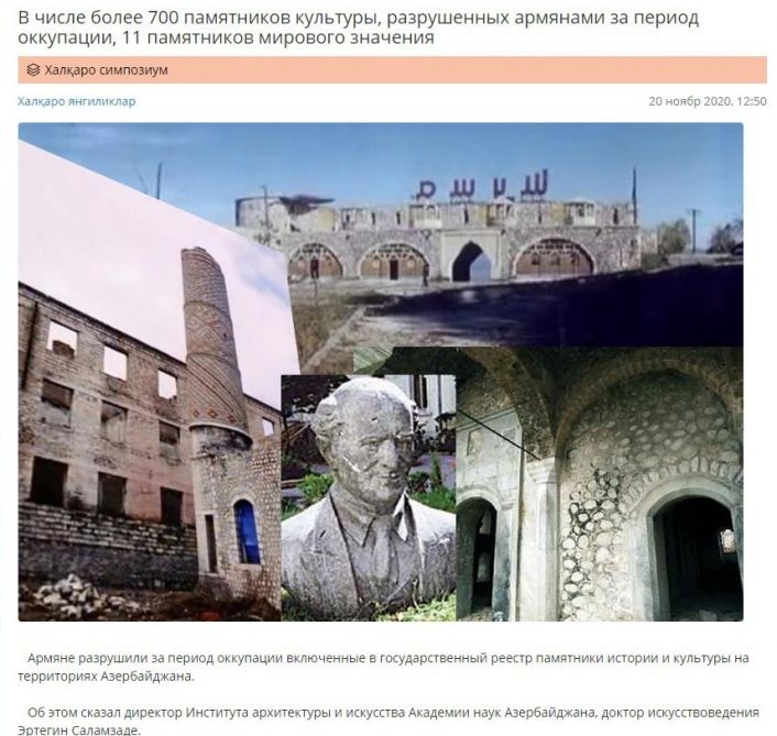Özbəkistanın “fikr.uz“ portalında Azərbaycanın işğaldan azad edilmiş ərazilərində tarix və mədəniyyət abidələrinin dağıdılması barədə məqalə dərc olunub.