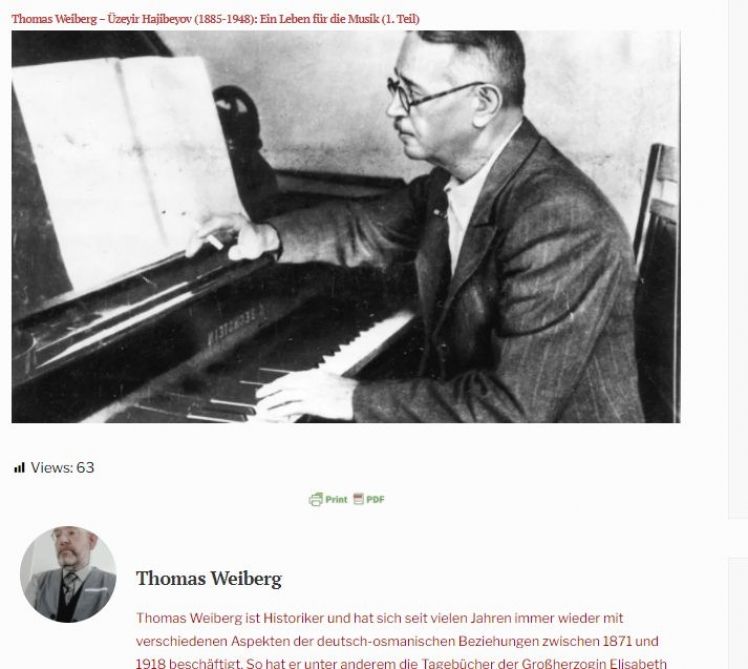 Almaniyalı məşhur türkoloq Tomas Vayberq dahi Azərbaycan bəstəkarı Üzeyir Hacıbəyli haqqında məqalə dərc etdirib.
