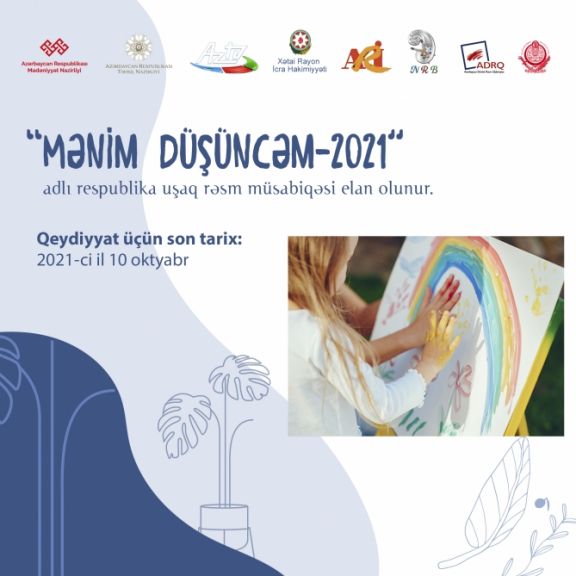 Mədəniyyət Nazirliyi, Təhsil Nazirliyi, “Azərbaycan Televiziya və Radio Verilişləri” Qapalı Səhmdar Cəmiyyəti, Xətai Rayon İcra Hakimiyyəti, Azərbaycan Rəssamlar İttifaqı, Naxçıvan Rəssamlar Birliyinin dəstəyi, Azərbaycan Dövlət Rəsm Qalereyası və Xətai Sənət Mərkəzinin təşkilatçılığı ilə “Nizami Gəncəvi İli" çərçivəsində yay tətilində rəssamlıq istedadı olan uşaq və gənclərin diqqətini çəkən mənzərə, hadisə və əşyaların öz düşüncələri ilə təsvir müstəvisində əks etdirmək bacarıqlarını inkişaf etdirmək məqsədilə “Mənim düşüncəm-2021” adlı respublika uşaq rəsm müsabiqəsinə qeydiyyat davam edir.