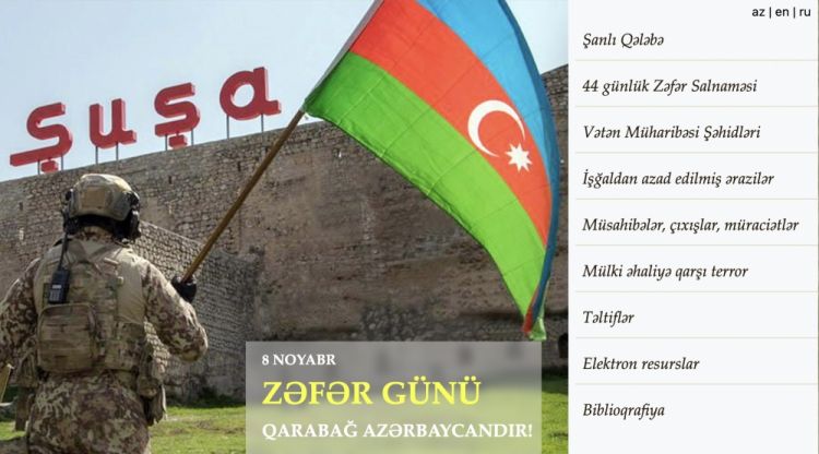 Azərbaycan Respublikası Prezidentinin İşlər İdarəsinin Prezident Kitabxanasının əməkdaşlarının hazırladıqları “8 Noyabr - Zəfər Günü. Qarabağ Azərbaycandır!” adlı elektron nəşr istifadəçilərin ixtiyarına verilib.