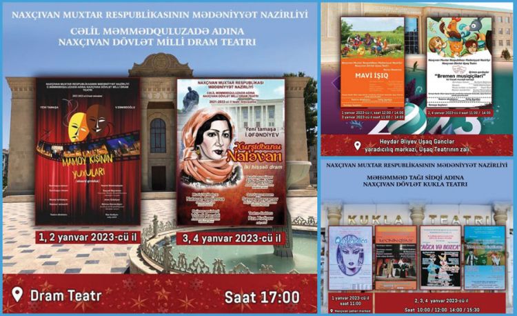 Naxçıvan Muxtar Respublikası Mədəniyyət Nazirliyinin tabeliyində fəaliyyət göstərən dövlət teatrları tərəfindən bayram günlərində maraqlı tamaşaların nümayişi nəzərdə tutulub.