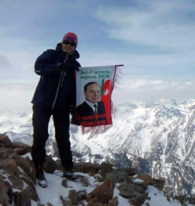 NUHÇIXAN xəbər verir ki, ümummilli lider Heydər Əliyevin anadan olmasının 95 illik yubileyi münasibətilə təşkil edilən ekspedisiyanın iştirakçıları 4530 metr hündürlükdə yerləşən zirvəyə qalxaraq, üzərində dahi şəxsiyyətin rəsmi olan bayrağı burada dalğalandırıblar.