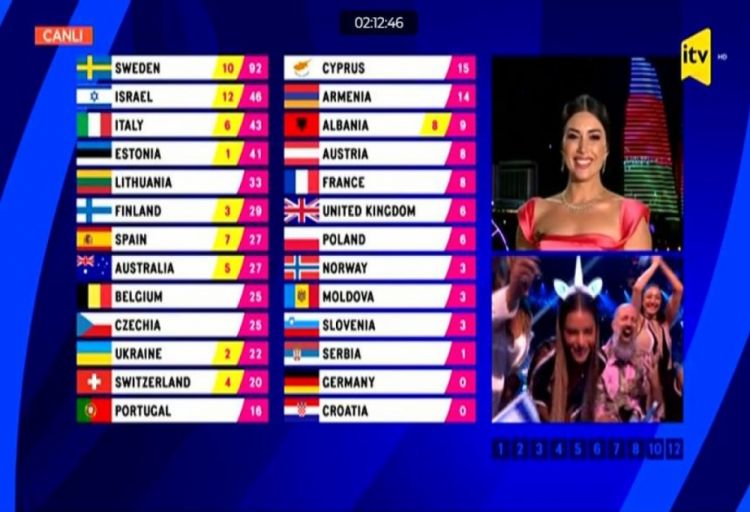 NUHÇIXAN İnformasiya Agentliyi xəbər verir ki, ölkəmiz ən yüksək 12 xalı İsrailə verib.