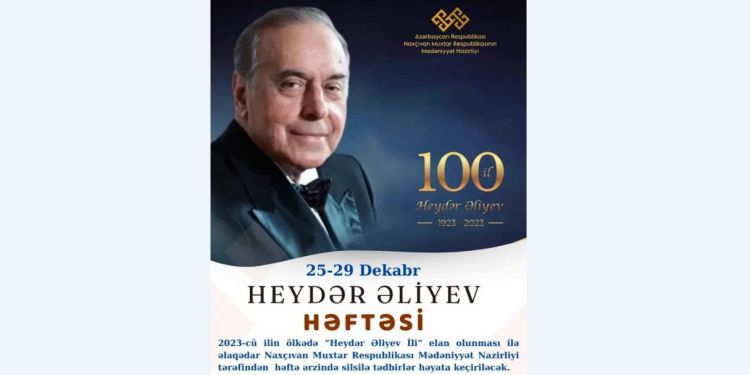 Naxçıvan Muxtar Respbublikasının Mədəniyyət Nazirliyinin mətbuat xidmətindən NUHÇIXAN-a verilən məlunata görə, ölkə başçısı İlham Əliyevin Sərəncamı ilə 2023-cü ilin Azərbaycan Respublikasında “Heydər Əliyev İli” elan olunması ilə əlaqədar Naxçıvan Muxtar Respublikasının Mədəniyyət Nazirliyi tərəfindən ilin son həftəsi (25-29 dekabr) “Heydər Əliyev həftəsi” elan olunub. Həftə ərzində Ulu öndərin mədəniyyətimiz qarşısındakı müstəsna xidmətlərinə həsr olunmuş silsilə tədbirlər gerçəkləşəcək, tamaşa və film nümayiş olunacaq.