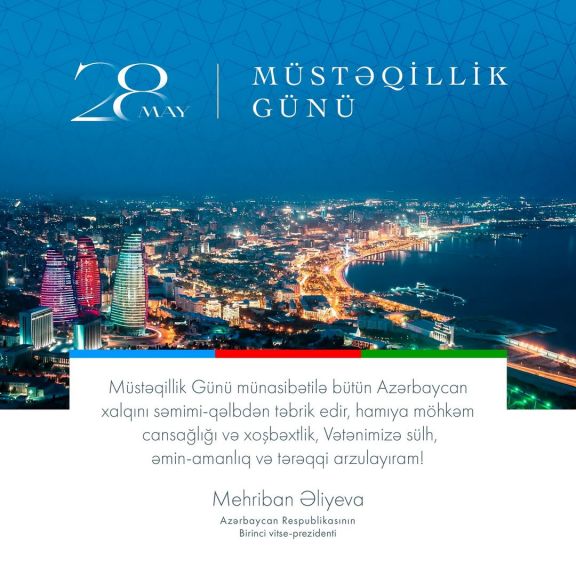 Azərbaycan Respublikasının Birinci vitse-prezidenti Mehriban Əliyeva rəsmi instaqram səhifəsində 28 May – Müstəqillik Günü ilə bağlı paylaşım edib.