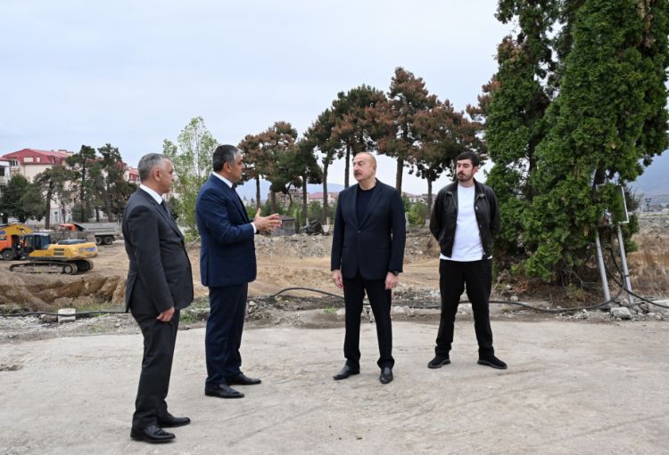 Prezident İlham Əliyev Xankəndi şəhərinin Zəfər meydanında Konqres Mərkəzinin tikintisi ilə tanış olub - YENİLƏNİB