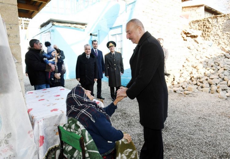 Prezident İlham Əliyev zəlzələdən zərər çəkən tikililərə baxıb, sakinlərlə söhbət edib.