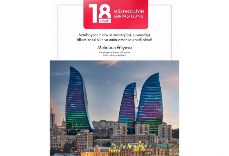 Azərbaycanın Birinci vitse-prezidenti Mehriban Əliyeva rəsmi instaqram səhifəsində Müstəqilliyin Bərpası Günü ilə bağlı paylaşım edib.