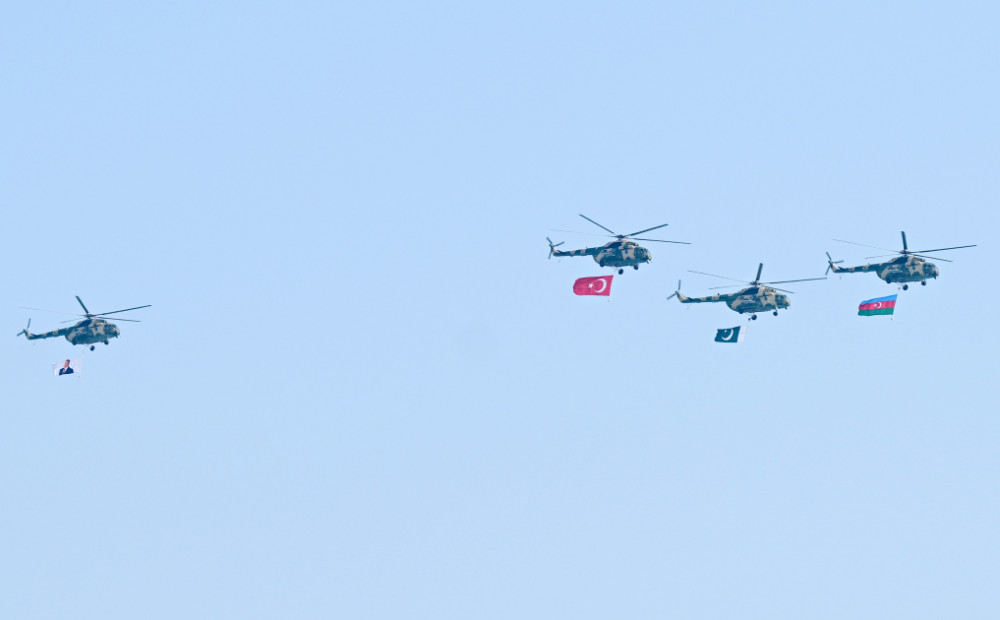 Bundan sonra Azadlıq meydanı üzərində Azərbaycan və Türkiyə pilotlarının iştirakı ilə Hərbi Hava Qüvvələrinə məxsus döyüş təyyarələrinin və helikopterlərin uçuşu oldu.