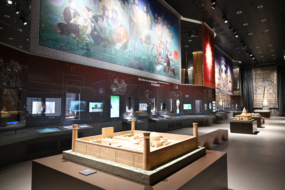 Ekspozisiyanın mərkəzində yerləşən “Müqəddəs Quran” zalında müsəlman dünyasının mənəvi incisi – “Osman Quranı” saxlanılır. Zalda Samanilər, Qaraxanlılar, Xarəzmşahlar, Teymurilər və digər sülalələr dövründə yazılmış “Quran”ın əlyazma nüsxələri, həmçinin onların özbək dilinə tərcümələri təqdim olunur. Mərkəzdə dini-maarifləndirici və innovativ media layihələri reallaşdırılıb.