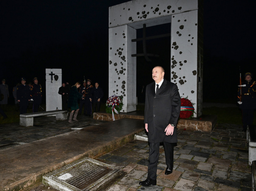 Prezident İlham Əliyev və Prezident Peter Pelleqrini abidənin önünə əklil qoydular.