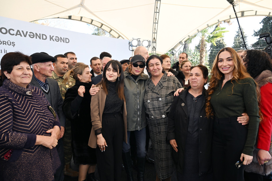 Prezident İlham Əliyev: Uzun illər əzab-əziyyət içində yaşamısınız. Köçkün həyatı ağır həyatdır, həm mənəvi əzablar, həm fiziki çətinliklər, öz doğma torpağını tərk edib başqa yerə, hətta Azərbaycanın içində olsa belə getmək və əzab-əziyyət içində yaşamaq böyük sınaqdır. Siz bu sınaqdan şərəflə çıxmısınız. Əminəm ki, bütün Azərbaycan xalqı, siz də hər zaman inanırdınız ki, bu gün gələcək və bu torpaqları biz azad edəcəyik, ədaləti bərpa edəcəyik, düşməni torpaqlarımızdan qovacağıq. Bildiyiniz kimi, vaxtilə işğal edilmiş torpaqların böyük hissəsi beş il bundan əvvəl Vətən müharibəsi zamanı azad olunsa da, Xocavənd hələ də işğal altında qalmışdı və xocavəndlilər də hesab edirdilər ki, nə vaxtsa vəziyyət dəyişəcək. Əminəm, cəmiyyətdə inam var idi ki, bir qarış torpaq da düşmənin tapdağı altında qalmayacaq və biz buna da nail olduq. Artıq iki ildən çoxdur ki, bütün əraziyə - Azərbaycan dövlətinin suveren ərazisinə biz nəzarət edirik. Düşmənin sonuncu yuvasını da dağıtmışıq, separatçıları da qovmuşuq, onları da məhkəmə qarşısında cavab verməyə məcbur etmişik və ədaləti tam bərpa etmişik. Ona görə artıq o ağır dövr geridə qaldı, arxada qaldı, bir daha qayıtmayacaq. Bu gün dövlətimiz güclüdür, ordumuz güclüdür və xalqımız bu illər ərzində artıq bütün dünyaya öz böyüklüyünü göstərmişdir. Son 80 il ərzində Azərbaycan qədər belə tam və mütləq qələbə qazanan ikinci ölkə olmamışdır.